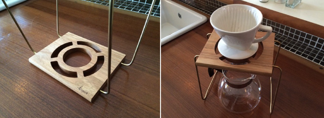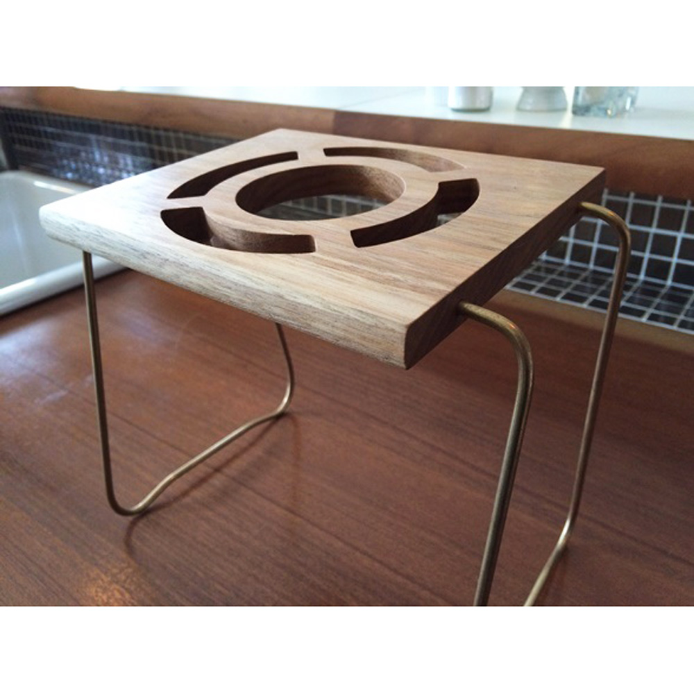 ハンドドリップ用1ポイントスタンド。脚には真鍮を使用し、温かみがあり、随所に日本の職人ならではのきめ細かい技が光る一品。自然の素材を活かし、1点1点手作りしています。脚の真鍮は、木部に差し込み式なので取り外し可能です。