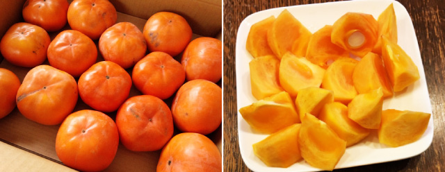 次郎柿はシャキシャキとした食感が特徴の甘柿です。初めは固い触感で味わっていただき、2・3日して柔らかくなったらそのまま冷凍してシャ-ベットにして食べていただくと、またちがった美味しさが味わえます。