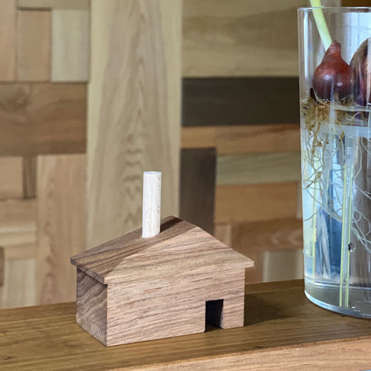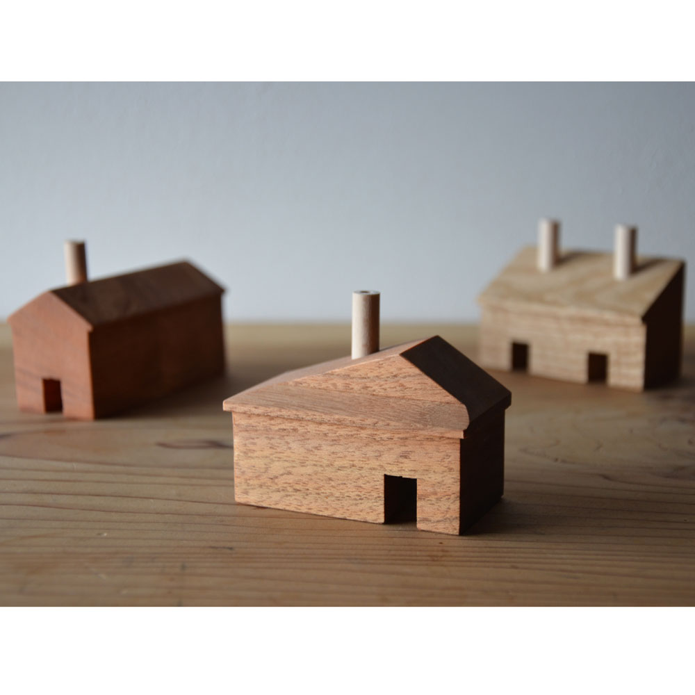 山形県産木材の端材を活用した、かわいい家型の木製オブジェ。木のやさしい温もりをそっと伝えてくれます。5種類の木材の中から、お気に入りのひとつをお選びください。樹種ごとに異なるデザインとなっています。単体で飾るのはもちろん、複数そろえてデザインや質感の違いを味わってみるのも楽しそう。お部屋のインテリアとしてだけでなく、引っ越しや新築祝いのプチギフトとしても喜ばれるアイテムです。