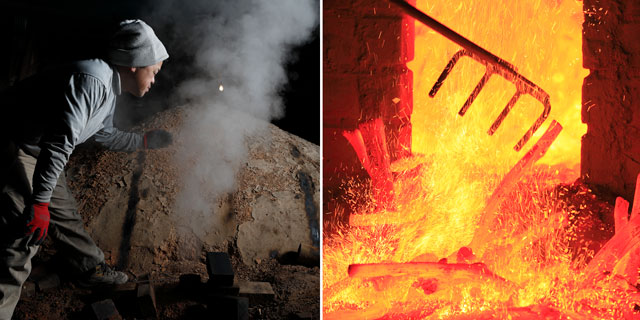 伊勢志摩の森には備長炭の原木となるウバメガシが群生しています。急峻な斜面での作業は重労働。5トンもの原木を地道にに山から切り出します。原木は1本ずつ丁寧に木ごしらえをし、窯にぎっしり詰め込むと、壺の入り口付近で火をつけ、窯口を塞いで約15日~20日程度かけてじっくりと丁寧に蒸し焼きにします。匂いや煙の色で窯の中の状態を判断しながら、火や窯口を調節し、炭化、精錬を行います。1000℃を超える高温の中で黄金の炭を取り出し、灰をかけて1~2日かけてじっくり冷やすと、白くて金属のように硬い伊勢志摩備長炭の完成となります。炭は、サイズごとに選別を行い箱に詰めて出荷しています。