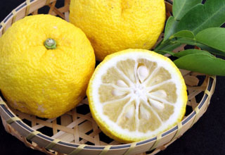 とんがりゆず:酢飯や酢の物、魚料理はもちろん、焼酎のお湯割りなどにもおすすめです。