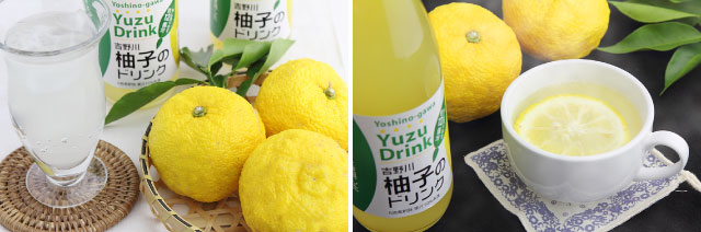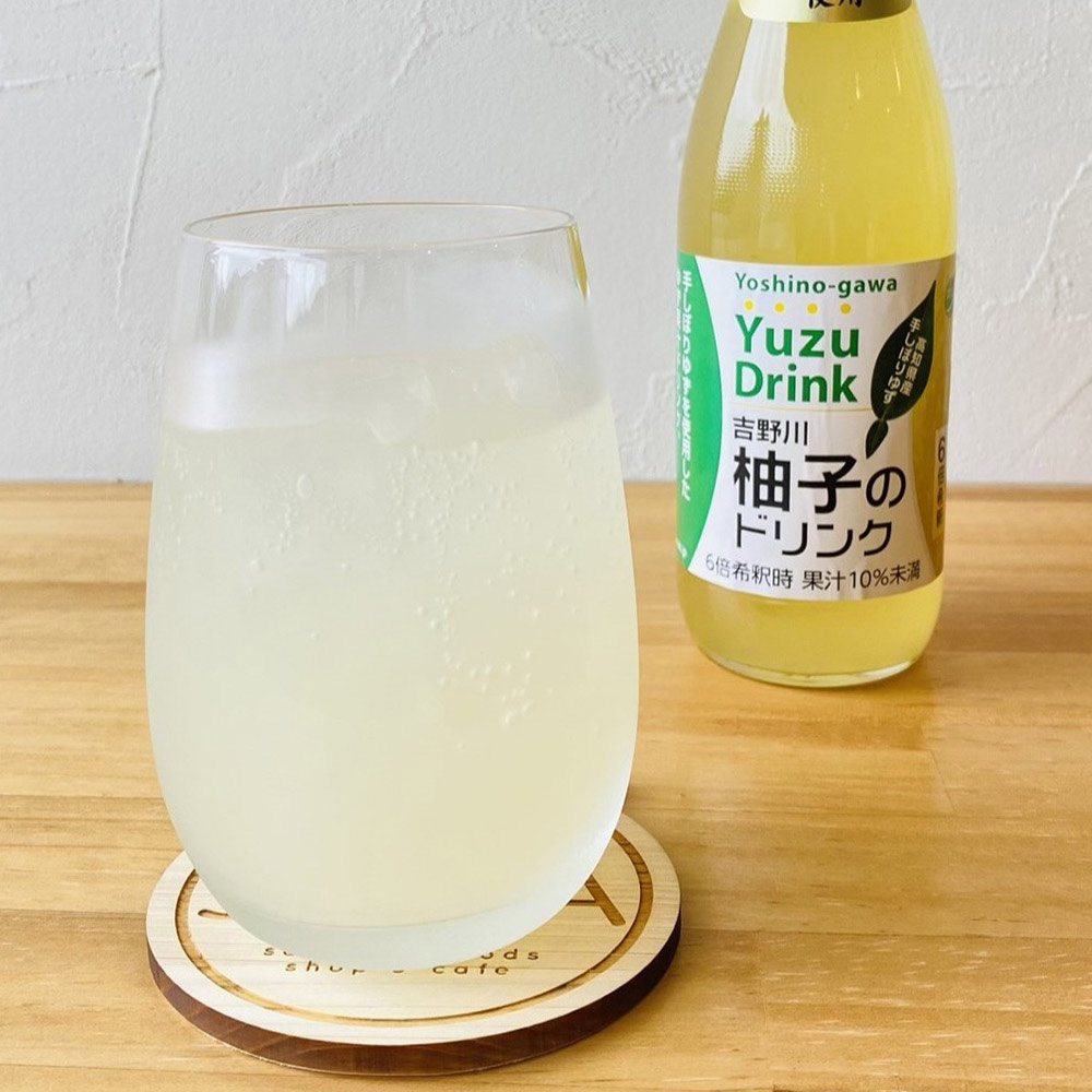 吉野川柚子のドリンク…ゆず果汁とアカシアはちみつをブレンドした6倍希釈ドリンク。さわやかなゆずの香りと柔らかな甘さが特徴です。