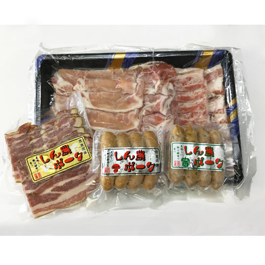 やわらかく旨味のあるヘルシーな酵母豚「しん農ポーク」のスライス盛り合わせと、バラベーコン、えのきウィンナー、ぼたんこしょうウィンナーの4点を味わえるおすすめセットです。自社開発したミネラルたっぷりの無添加・酵母醗酵飼料で育った安心・ヘルシーな豚肉と、中野市産の農産物がコラボレーションした逸品をぜひご賞味ください。ギフトにもおすすめです。