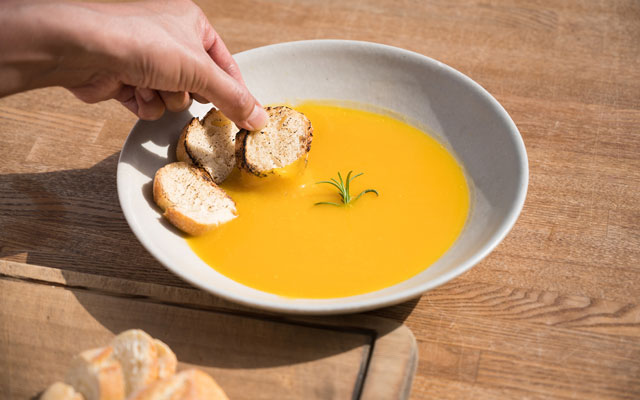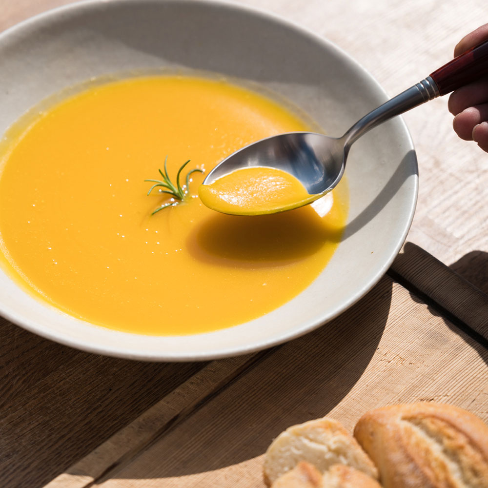 「ロロンかぼちゃのズッパ」は、無農薬無科学肥料で育てた上勝産のロロンカボチャと上勝の天然水、イタリア産のエクストラバージンオリーブオイルと海塩のみを組み合わせてつくられています。これらの食材をコトコトと煮詰め、滑らかになるまで擦り潰しました。上勝の恵みが醸し出すさっぱりとした甘味と香りを楽しんでください。