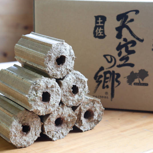 「もみのひ」は「土佐天空の郷」のもみ殻を使用した固形燃料です。