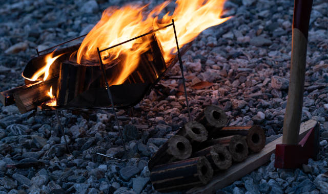 「もみのひ」は燃え始めには、勢いよく炎がたちそのあとはおき火になります。じっくりと燃え続けるおき火は長時間安定した火力を保つことができるので、お料理やバーベキューにぴったりです。レジャー以外ではマキストーブやお風呂の湯沸かし用にも活用していただけます。 そして、「もみのひ」の燃焼時間は一般的なマキと比較して約3倍の長さがあります。コストパフォーマンスが高いところもおすすめする大きなポイントです。
