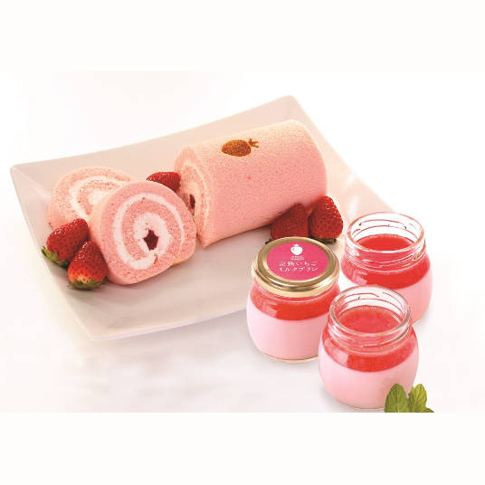 完熟いちごジャム入りの純生クリームをいちご風味の生地で巻き上げた、 甘酸っぱいいちごのソースがおいしさを引き立てる「完熟いちごロール」と新鮮なミルクと濃厚な生クリームにいちご果汁を加えたなめらかな口当たりのいちごミルクプリンに、完熟したいちごの甘酸っぱいソースが絶妙の「完熟いちごミルクプリン」を詰合わせたギフトセットです。