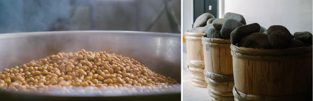 寒暖差のある気候で育つ、鳥取県産の良質な米や大豆を丁寧に手作業で仕込んでいます。添加物を加えず、温度・湿度も自然の流れにまかせながら、酵母菌の力だけで、木樽で1年以上じっくり熟成させます。