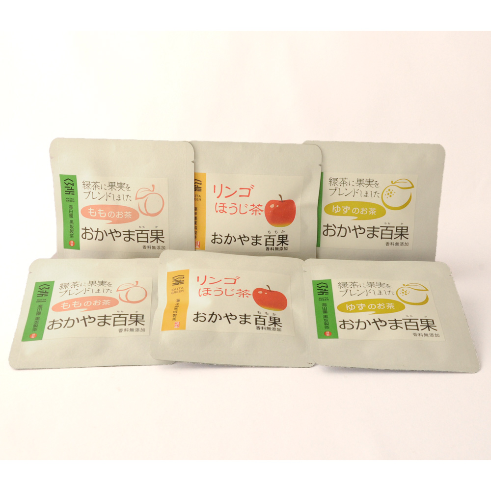 【素材】緑茶(岡山県産)、乾燥モモ(岡山県産)、乾燥リンゴ(岡山県産)、乾燥ユズ皮(岡山県産)