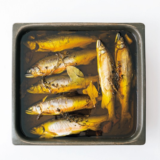 【素材】鮎(四万十産)、オリーブオイル(スペイン産)、塩(四万十産)、四万十産ハーブ(ニンニク、ローリエ、ローズマリー、タイム)