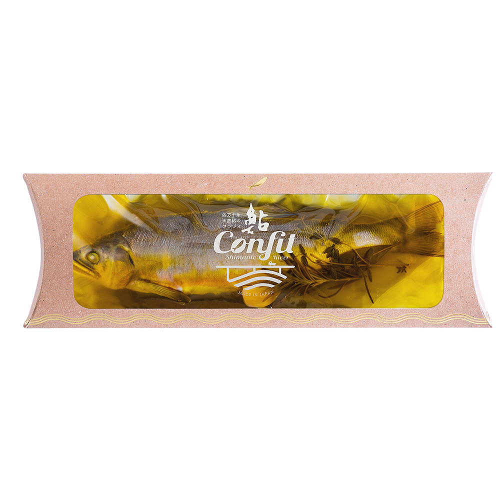 四万十川の天然鮎を、フランスの伝統料理コンフィにしました。上質なオリーブオイルと、厳選したハーブを使い、鮎を低温でじっくり煮込んで作ります。「四万十の魅力を世界の食卓へ届けたい!」と、地元の漁師や都会のシェフが手を取り合って生まれた、ワインにもよく合う逸品です。鮎本来の風味がハーブの香りとともに広がり、ワインの香りと合わさると、より豊かな風味が広がります。世界に通用する四万十の味をぜひ、お楽しみください。