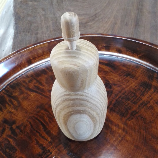 一本の木から、頭部・底部を削り出して作った七味入れです。底部は広く削りだしているため、小さいながら多くの七味を入れることができます。