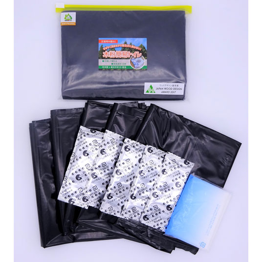 【内容量】木粉凝固パウダー:5袋、汚物袋:5袋、ポケットティッシュ:1袋