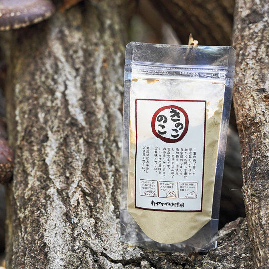 きのこのこ…乾しいたけをパウダー状の粉末にして焙煎したものです。お出汁やお菓子作りの材料などあらゆるシーンでご使用いただけます。