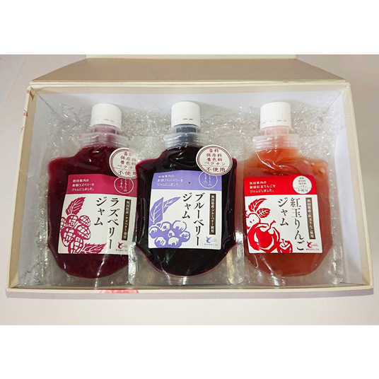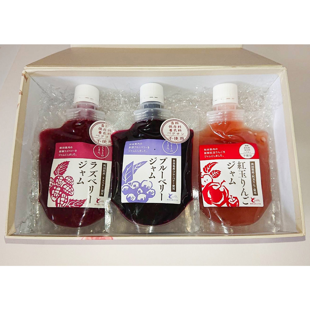 秋田の自然の恵みを受けて育ったブルーベリー・ラズベリー・紅玉リンゴを使った、とりみファーム特製のフルーツジャムです。