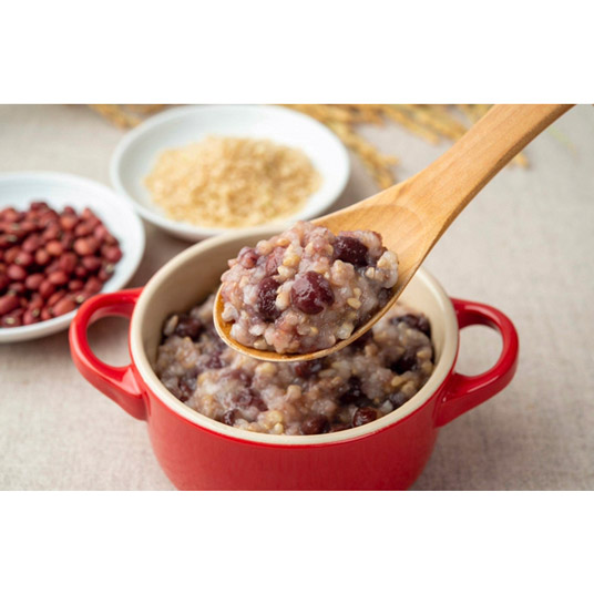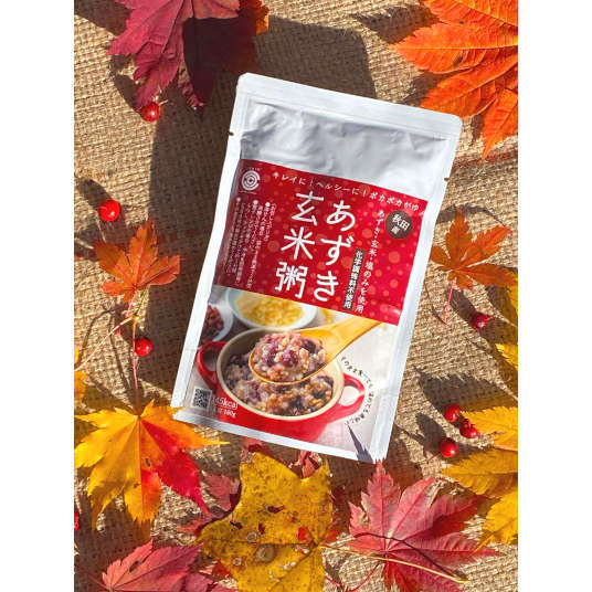 生産者の視点で自分が食べたいと思うものにこだわって作りました。秋田県大潟村はかつて琵琶湖に次いで2番目に大きな湖でした。現在は干拓により、大規模農場として知られる米どころとなりました。その新生の大地で育ったお米と小豆、そして隣のナマハゲで有名な「男鹿の塩」のみで作った、すべて秋田県産で化学調味料不使用のあずき玄米がゆです。