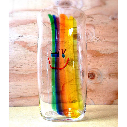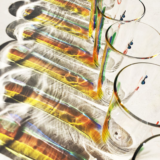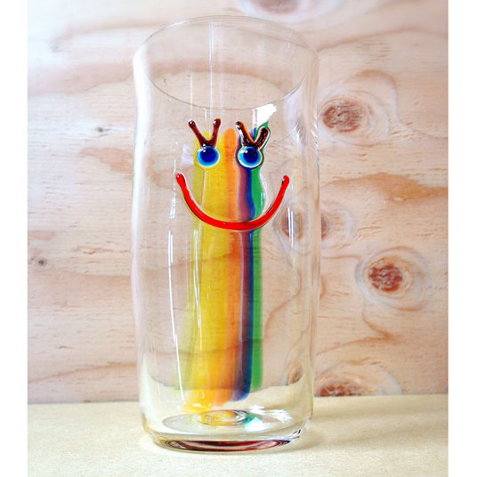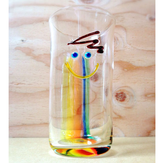 宙(ちゅう)吹きガラス技法にしかできない優しい表情を大切に、家族、笑顔、平和、自然などをテーマにした作品を作っています。「お客様の暮らしが少しでも楽しく豊かになれば嬉しいな」という思いで制作しています。すべて手作りの一点ものです。大切に末永く使っていただけるように、グラスであれば口当たりの薄さや角度にこだわりるなど、ひとつひとつ丁寧に仕上げています。