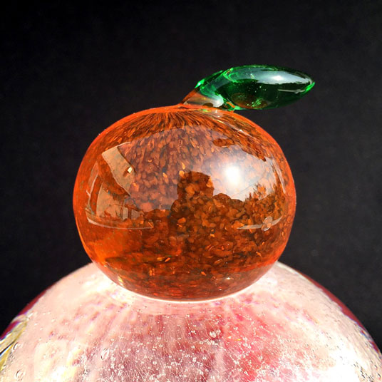 宙(ちゅう)吹きガラス技法にしかできない優しい表情を大切に、家族、笑顔、平和、自然などをテーマにした作品を作っています。「お客様の暮らしが少しでも楽しく豊かになれば嬉しいな」という思いで制作しています。すべて手作りの一点ものです。大切に末永く使っていただけるように、グラスであれば口当たりの薄さや角度にこだわりるなど、ひとつひとつ丁寧に仕上げています。