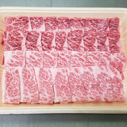 肩ロースはサシ(霜降り)の入りやすい部分で、柔らかく風味があり、すき焼きによく合います。秋田由利牛は出荷前の6カ月間、栄養豊富なえさをたっぷりと与えて育てています。お米を与えて育てた牛のお肉は、通常の飼料を与えたお肉よりも柔らかく、ジューシー。うまみが強く、脂の口溶けがよい、おいしい牛肉になります。
