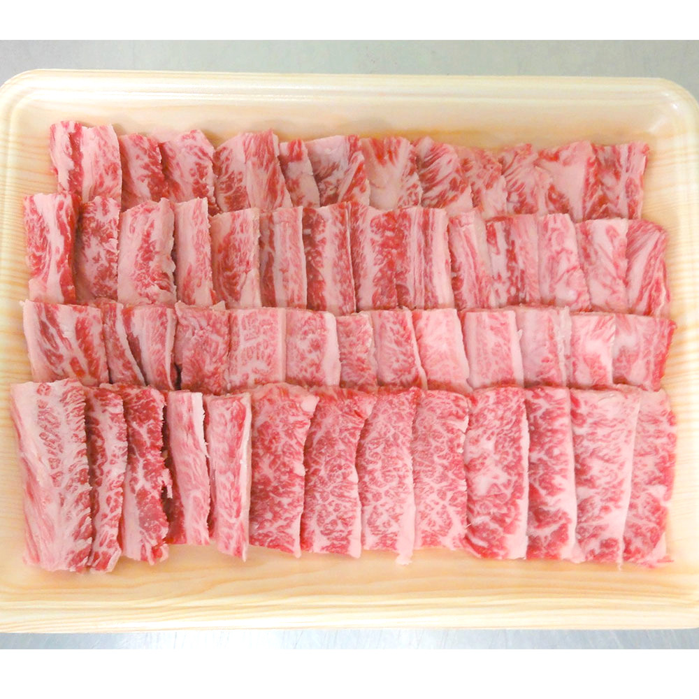 牛バラ肉は赤身と脂肪が適度に重なり、味は濃厚で風味が豊かです。サシ(霜降り)の入りやすい部分で焼肉によく合います。秋田由利牛は出荷前の6カ月間、栄養豊富なえさをたっぷりと与えて育てています。お米を与えて育てた牛のお肉は、通常の飼料を与えたお肉よりも柔らかく、ジューシー。うまみが強く、脂の口溶けがよい、おいしい牛肉になります。分厚くスライスしているため、焼き肉用としてお楽しみください。