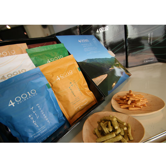 「40010(しまんとう)」は商品開発コンセプトとして「人と環境にやさしい商品&地域自らが地域を守り育てる商品」(四万十流域の資源を活かした、こだわりの商品作り)を掲げ、 地元の規格外野菜などの地元食材を使用して製造しています。四万十川流域で育まれたこだわりの素材を活かしたかりんとうです。