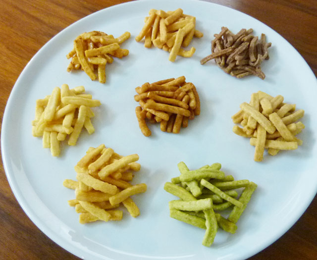 しょうが・たまねぎ・プレーン・だし醤油・青のり・ゆずが各1袋、計6袋入のセットです。