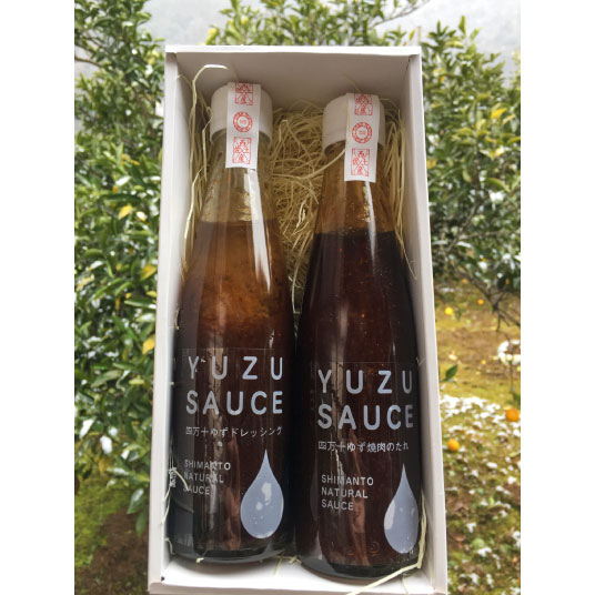 四万十市西土佐産の農薬を使わずに栽培されたユズをたっぷり使用したドレッシングと焼肉のたれのセットです。