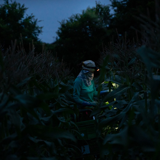 スイートコーンは、夜間に糖分を蓄えます。一日で最も甘くなる夜明け前に収穫するため闇採りと名付けました。