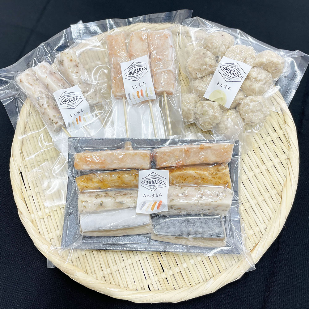 くしもん(ハーブガーリック)…しいら、塩、胡椒、オリーブオイル、サラダ油(一部に小麦・大豆を含む)ディル、ガーリックパウダー、オレガノ、セージ