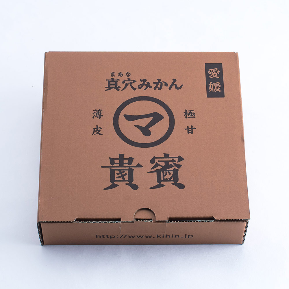 真穴では、地形・方位・気候・土壌など自然条件に恵まれた最適地を選び抜いて、温州ミカンだけにこだわって育ててきました。年間で約7千トンもの収穫がありますが、その中からわずか数%しか採ることのできない「極甘・薄皮」のミカンをさらに厳選したものが「貴賓」です。