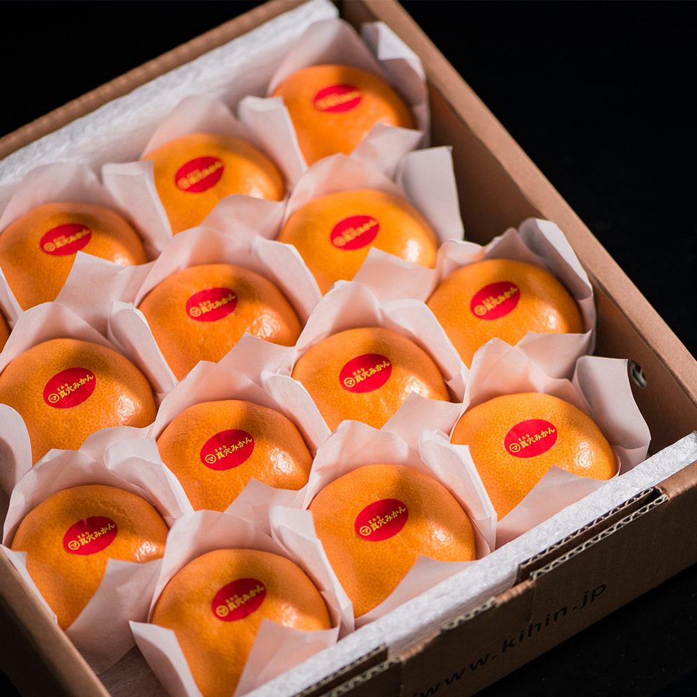 わずか数%しかとることのできない極甘・薄皮のみかんをさらに厳選したものが、「貴賓(きひん) 」です。果肉を包む薄皮は口の中でとろけ、そのあとに甘さと程よい酸味が広がります。