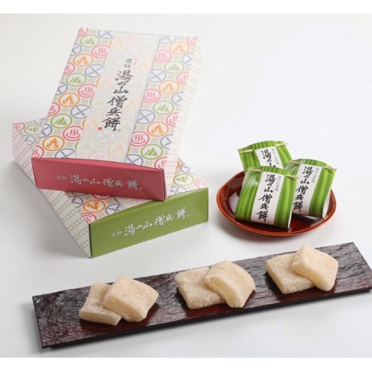 湯の山温泉で人気のお土産3点セットです。「湯の山僧兵餅」は、湯の山温泉の旅館・ホテルのお部屋出しお茶菓子で、シナモン風味の求肥餅は温泉地で永く愛される銘菓です。第20回菓子博では、菓子博会長賞を受賞しました。