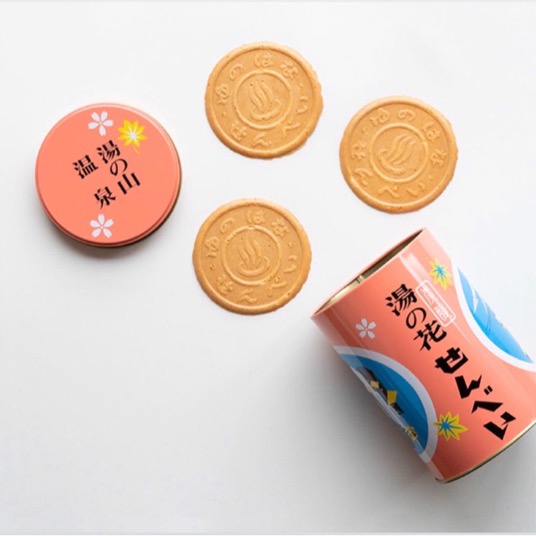 昭和32年創業。三重県菰野町(こものちょう)の湯の山温泉御在所岳の麓で、湯の花せんべいを始めとした観光土産菓子を製造・卸・販売 しています。「湯の花せんべい」は、味も創業当時のまま、無添加で作っています。昭和34年の御在所ロープウェイ開通を機に今の缶入になり、パッケージデザインはほぼ変わっていません。半世紀以上愛されるロングセラー商品です。モンベルのフレンドショップ御在所ロープウェイでも、お買い求めいただけます。
