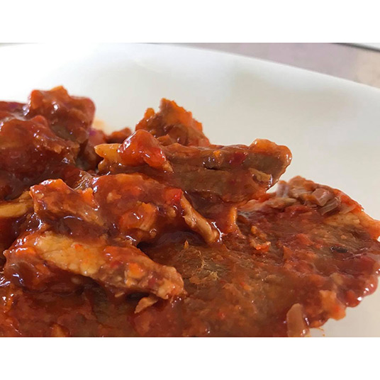 【素材】豚肉(モモ)、しょうゆ、砂糖、発酵調味料、おろしニンニク、水あめ、コチュジャン、唐辛子、植物油、豆板醤、XO醤、いりゴマ、野菜エキス、ネギペースト、酵母エキス、香辛料、寒天増粘剤、調味料、パプリカ色素、ビタミンC、紅麹色素、香料