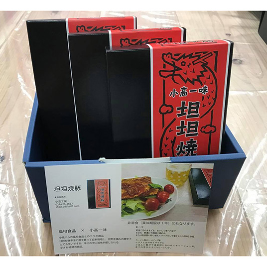 小高工房の唐辛子をたっぷり使った一味と福相食品の焼豚を掛け合わせた、激辛「坦坦焼豚」3個パックです。辛さの中にもうまみがあるのが特徴です。