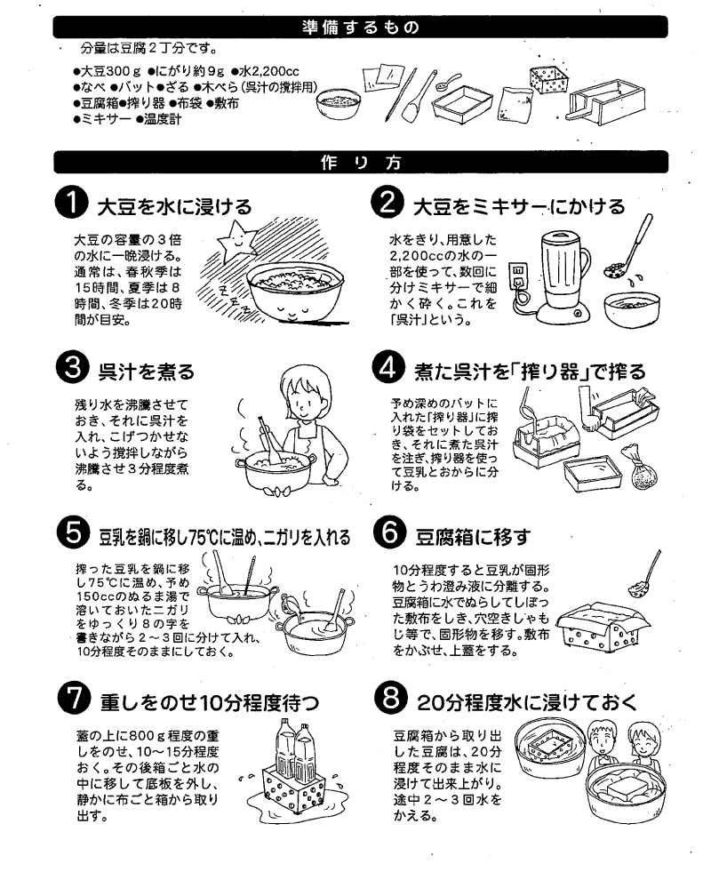 【内容量】2丁用豆腐箱(サイズ/奥行430mm×幅200mm×高さ200mm)、豆乳絞り器、布袋、敷布、大豆300g、にがり約9g、作り方説明書 (全重量 約3kg)