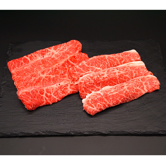 全国屈指の黒毛和牛として人気を誇る「山形牛」と、全国で唯一の生産者である高橋畜産から出荷されるブランド牛「蔵王牛」の希少部位ミスジ入りの肩肉すき焼用セットです。