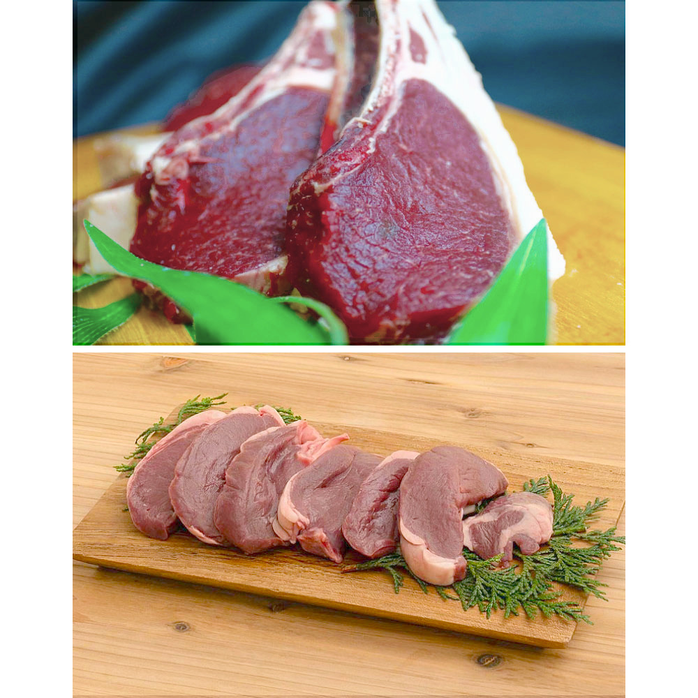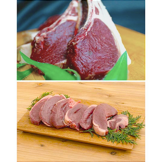 熟成エゾジカ肉のロースとハツのステーキセットです。