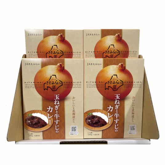 JAきたみらい地域(北見市、訓子府町、置戸町)で生産されたタマネギと、北海道産の牛すじ肉を使用したレトルトカレーです。日本一の生産量を誇るタマネギと牛すじ肉をじっくりととろとろになるまで煮込み、甘みとコクを引き出した本格的な味わいです。温めるだけでお手軽に本格カレー味わうことができるので、ストックしておくと重宝します。
