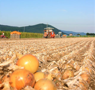 日本一の生産量を誇るタマネギは、たくさんの太陽を浴びて成長することで球の締まりがよく、熱を加えることでとても甘みが強くなります。
