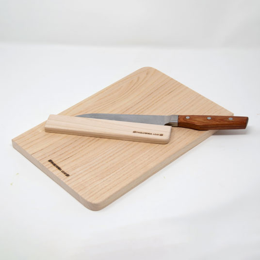 桐のまな板 中サイズと包丁カバーをを合わせた、アウトドアにも最適なセットです。