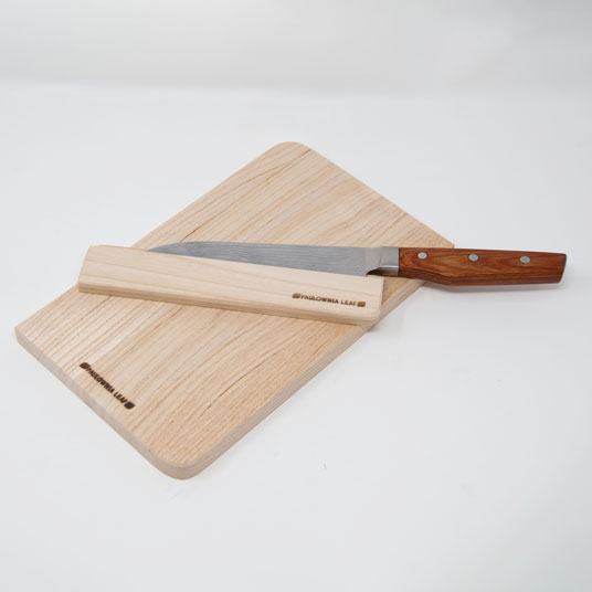 桐のまな板 小サイズと包丁カバーをを合わせた、アウトドアにも最適なセットです。
