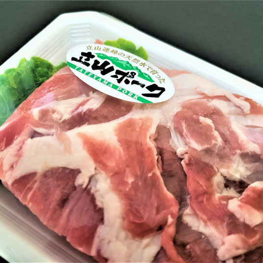 地元の富山県でおいしさを求めて長年研究を続け、品種改良をした日本ヨークシャー種を基礎とした三元交配豚を使用しています。栄養バランスに配慮した独自の飼料を与えることで、味わい深い肉に仕上がっています。
