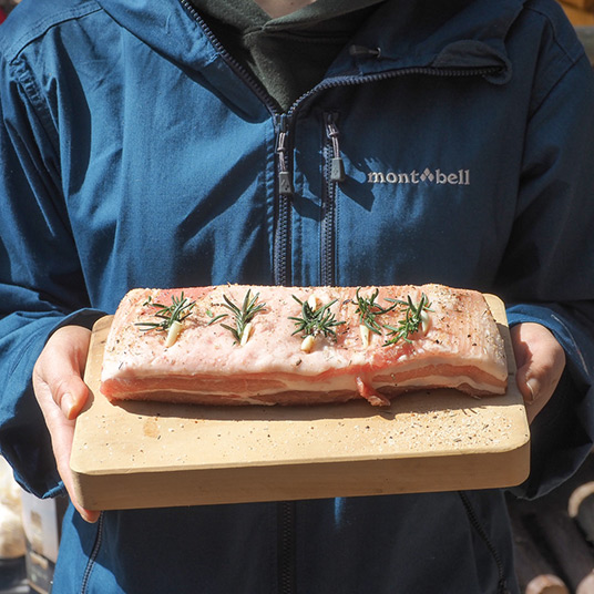 こだわりの飼料と立山連峰から流れる清らかな天然水を使用し、手塩にかけて育てた立山ポークのバラブロックです。締まりが抜群で豚肉のうまみが凝縮されています。バラ肉は他の部位と比べて脂身が多く柔らかい部位です。角煮やチャーシューをはじめ、ローストポークや燻製ベーコンなどダッチオーブンで作るアウトドア料理にもおすすめです。立山連峰から流れる天然水で育ったアウトドア料理にもおすすめのブロック肉をこの機会にご賞味ください。