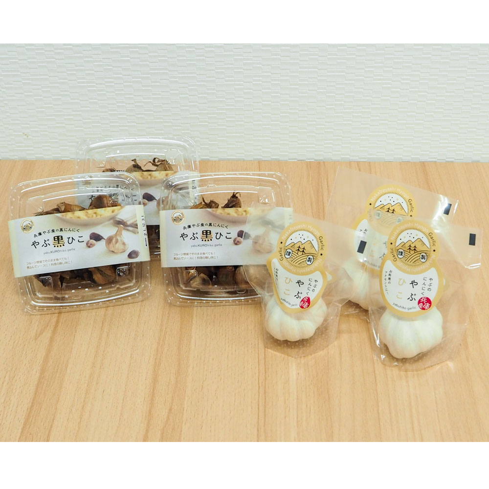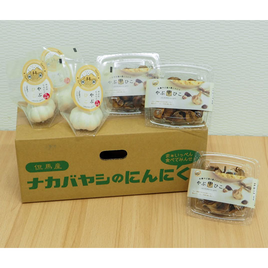 ナカバヤシのにんにく「やぶひこ」をたっぷり味わえる、生にんにくと黒にんにくのセット。辛みが強いにんにくです。