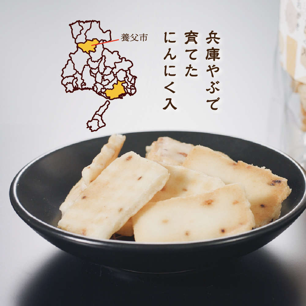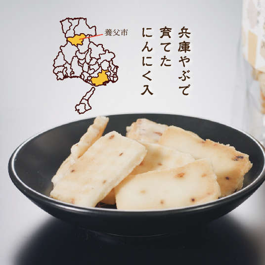 兵庫県の老舗おかきメーカー「株式会社げんぶ堂」と協力して作ったにんにくおかきです。食べた瞬間にんにくの風味が広がり、後に引くおいしさに仕上がっています。