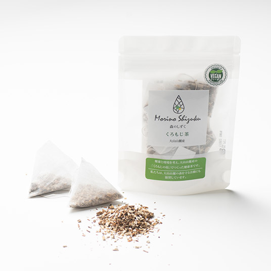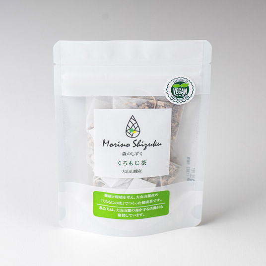大山山麓産100%のクロモジをお茶にしました。クロモジは古くから薬用酒の生薬(烏樟=ウショウ)として使用され、健康茶としても有名です。品質マネジメントシステムの規格「ISO9001」を取得した工場でクロモジに合わせた焙煎を行い、お手軽なティーパックにしました。何度も爽やかで甘みのある味わいと香り、落ち着いた琥珀色を楽しめます。