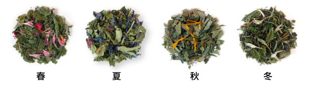 北海道の四季に合わせたハーブをブレンドしたハーブティー「蝦夷季語の花」シリーズ。