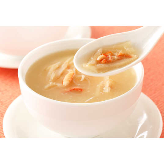 ふかひれ(気仙沼産)、紅ずわいがに、卵白(卵を含む)、たけのこ、食塩、かにエキス(小麦を含む)、オニオンエキス、香味油、ポークエキス/増粘剤(キサンタンガム)、調味料(アミノ酸等)、香辛料抽出物