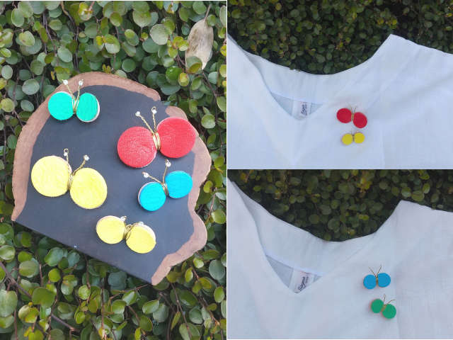 害獣として駆除される兵庫県宍粟市のニホンジカを活用し、ブローチを作りました。豊かな自然が残る宍粟市の里山をひらひらと舞うちょうちょをイメージし、立体的に動きのあるデザインにしました。